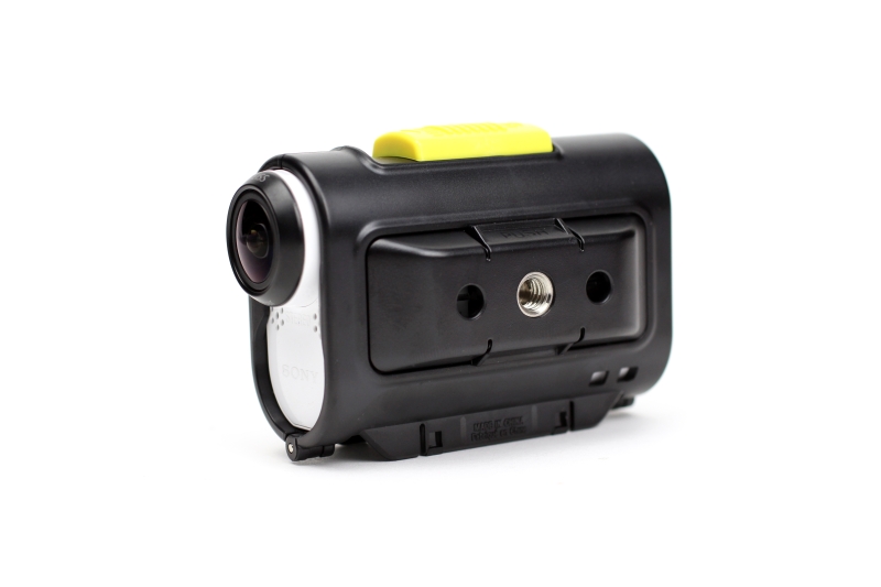 HDR-AS100V付属のウォータープルーフケースだと水平にマウントできないので、これでマウントの幅が広がります。