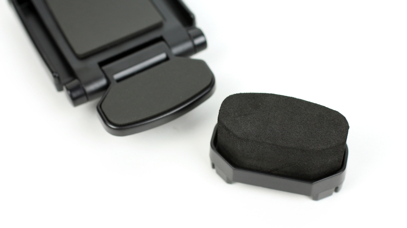 この下部の出ている部分は、ゴーグルなどのバンドに取り付けた際、頭部との隙間が出る場合に、スペーサーを取り付けることができます。