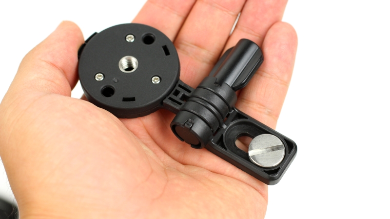 そして三脚ネジの箇所で左右へパンできるため、XYZ軸全てが調整可能となっています。