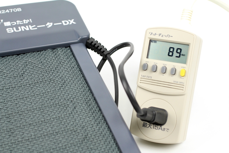 暖かいのは良いのですが、そうなると消費電力が気になるところです。仕様上は90Wとなっていますが、表示は当てにならないことも多いので実際に計測してみました。
