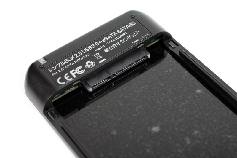 最近のSSDはSATA 6Gbpsの環境でないと実力を出し切れないほど高速化が進んでいますが、センチュリー シンプルBOX2.5 USB3.0+eSATAの内蔵ストレージ用IFはSATA 6Gbpsに対応しています。極力SSDの速度は活かしたいためこの点は重視して選択しました。