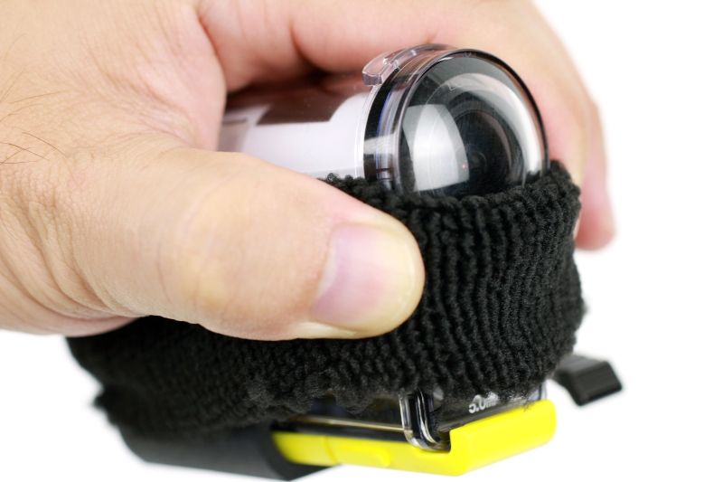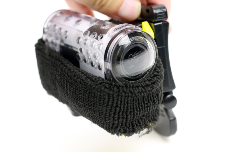 そこで、ウェアラブルカメラの風切り音対策で定番となっているリストバンドを使ってみることにしました。