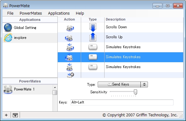 ちなみに、なぜiTuneだけアプリの指定があるのかと思うかもしれませんが、時代が時代(iPodが流行始めた時期)でしたし、Griffin Technology NA16029 PowerMate がMacにも対応ということでiTuneが用意されているのでしょう。