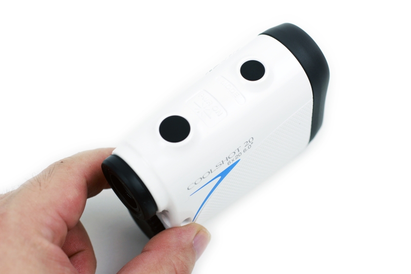 試しに計測をしようと握ってみましたが、COOLSHOT 20本体のサイズは男性の手であればちょうどフィットするサイズで、握ったときの違和感は無く、持ちにくく手ぶれが酷くなることはありませんでした。