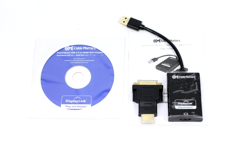 様々あるUSB接続のHDMIアダプタですが、最終的にUSB3.0に対応したCable Matters USB 3.0 → HDMI/DVI 変換アダプタを導入することに決定しました。
