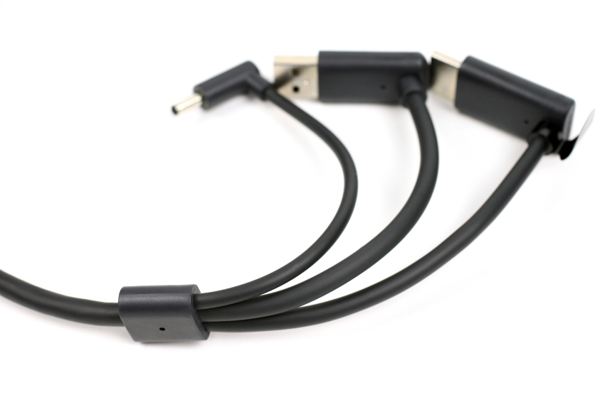 旧3 in 1ケーブルはよれると大きな輪になり、ケーブル長が短くなることでVIVEのHMDがケーブルに引っ張られる感覚が強めに出ていましたが、これは大きく改善しています。