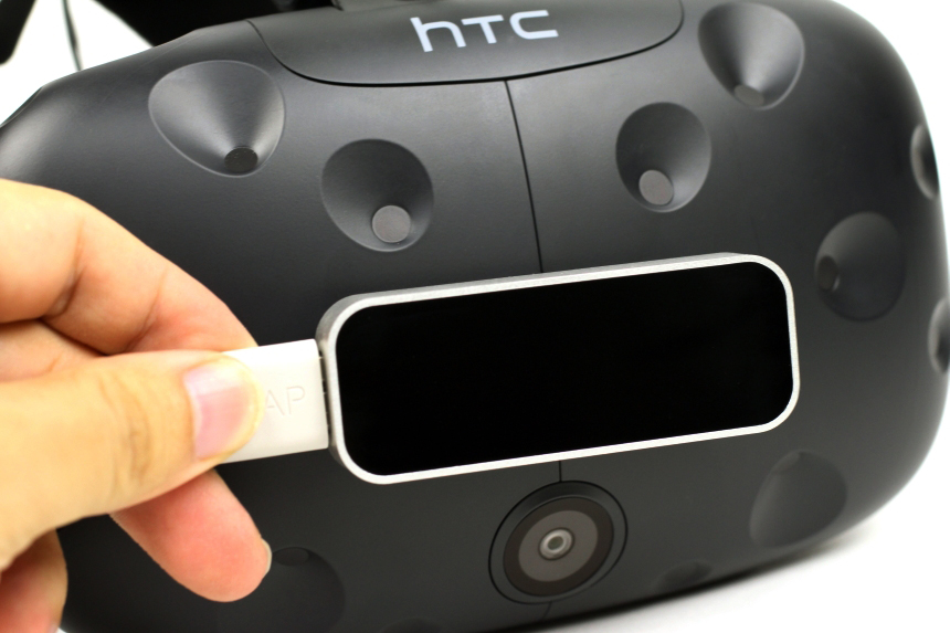 しかし、VIVEのHMDにはLeap Motionを取付けるのに便利なUSBポートが搭載されているため、このUSBポートにLeap Motionを接続してマウントしてみることにしました。