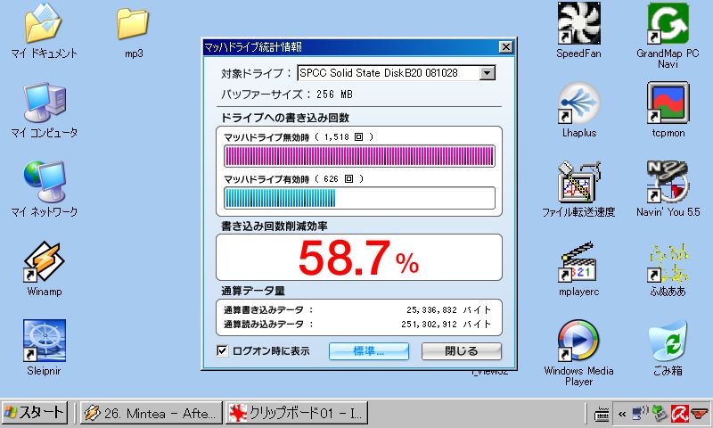 しかしさすがマッハドライブ、こいつを入れてないと動作が遅くてイラッとすることが多くなりました、また起動してからのWinampの立ち上がりが檄遅でこれも問題です。