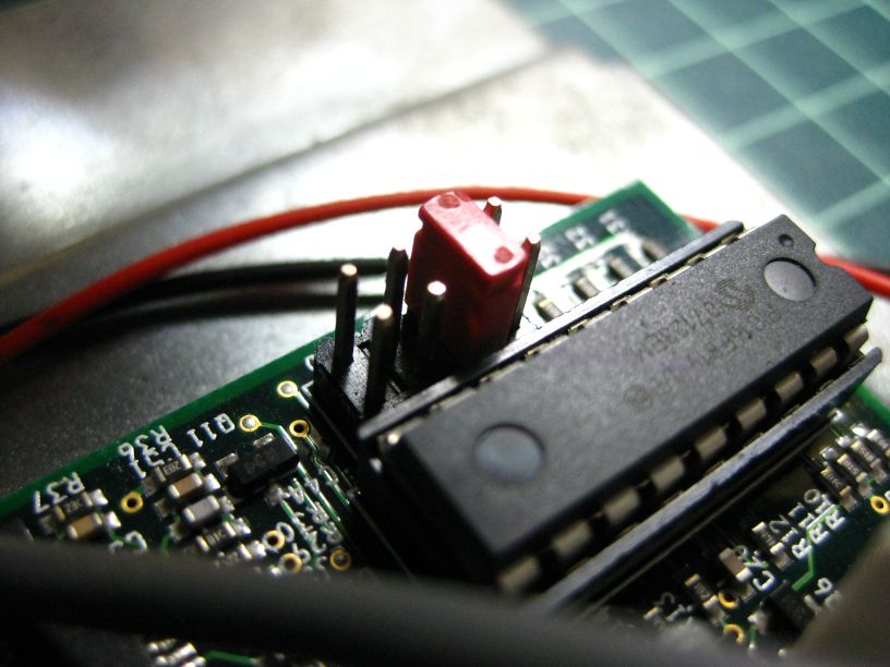 ジャンパピンをショートさせる場所を変更しました、説明書に従いジャンパ設定をMODE2へ変更しました、これでキーON後5秒デュレイ起動、キーOFF 後は2時間の設定へ変更されました。
