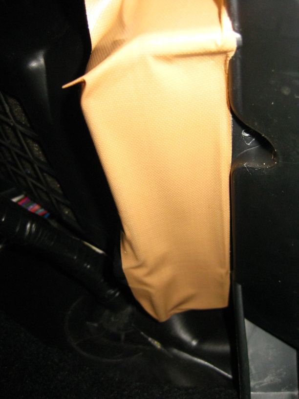 エアコンフィルターの蓋部分に布テープを貼り付けます、密閉しておかないと泡が出てきて大変なことになります、フロアマットが汚れないように下にタオル等を敷いておきましょう。