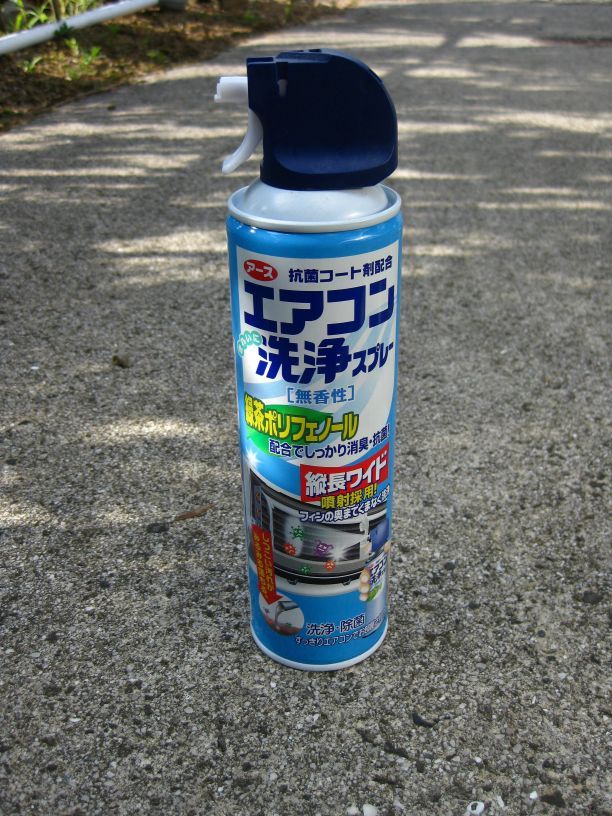 右はよくエバポレーター洗浄で紹介されているエアコン洗浄スプレーです、コレはアルコールが入っているので殺菌剤として使用します。