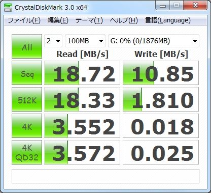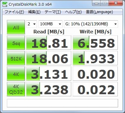 SDSDQ-008GJ35をIS03に入れカードリーダーモードで計測。